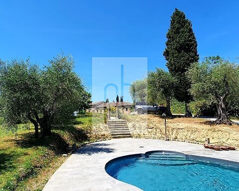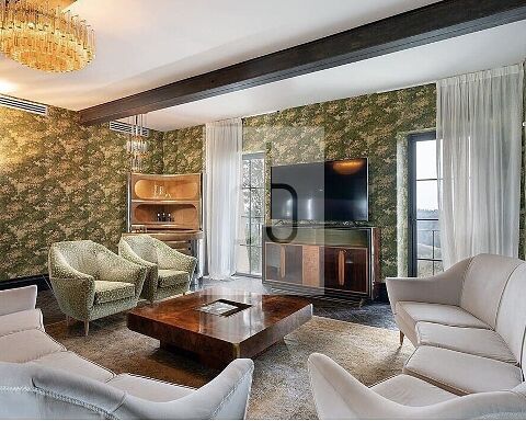 Die prachtvolle Villa, die im 16. Jahrhundert errichtet und auf den historischen Leopoldinischen Karten verzeichnet wurde, ist ein bedeutendes historisches Juwel, das durch eine aufwendige Renovierung in einen Ort von unvergleichlichem Luxus und modernem Komfort verwandelt wurde. Während dieser Restaurierung wurde äußerste Sorgfalt darauf verwendet, die ursprünglichen, wertvollen Elemente wie die antiken Fußböden von höchster Qualität und die imposanten Marmorkamine zu bewahren und durch sorgfältig ausgewählte Stücke des ikonischen italienischen Designs des 20. Jahrhunderts zu ergänzen, die im Laufe der Zeit gesammelt wurden. Die Villa erstreckt sich über zwei Hauptgeschosse sowie ein großes Dachgeschoss, insgesamt 800 Quadratmeter, und bietet eine Abfolge von großzügigen und eleganten Räumen. Beim Betreten des Erdgeschosses begrüßt einen ein einladender Eingangsbereich mit Kamin und ein atemberaubender Blick durch die großen Fenster auf den umliegenden Garten. Hier finden sich ein geräumiges Wohnzimmer, ein Spielzimmer, ein Esszimmer und eine professionelle Küche. Ein Schlafzimmer mit Doppelbett und Whirlpool, ein Personalzimmer und ein Badezimmer vervollständigen das Erdgeschoss. Im ersten Stock befinden sich fünf Schlafzimmer, jedes mit eigenem Bad, liebevoll gestaltet in einem einzigartigen Stil, der historischen Charme und modernes Design harmonisch vereint. Das Dachgeschoss bietet ein weiteres Schlafzimmer mit einem Ruhebereich, der durch kunstvolle Dekorationen und sichtbare Balken ergänzt wird. Die Außenanlagen der Villa umfassen 4000 Quadratmeter Blumengärten sowie Entspannungs- und Essbereiche im Freien, ein historisches Zitronenhaus und einen prächtigen Pavillon, umgeben von duftenden Glyzinien. Der zentral gelegene Designerpool mit Whirlpool wird von einem großzügigen Solarium Bereich umgeben und verfügt über ergänzende Einrichtungen wie Umkleidekabinen, Duschen und eine Bar, die einen idealen Ort für Entspannung und Vergnügen bieten. Das weitläufige Anwesen, das über 20 Hektar umfasst, folgt den Prinzipien der biodynamischen Landwirtschaft und harmoniert perfekt mit dem umliegenden Ökosystem, während es hochwertiges Olivenöl, Heilkräuter, Gemüse und Obst von herausragender Qualität produziert. Die 10 Hektar großen Olivenhaine erzeugen ein hochwertiges, IGP-zertifiziertes toskanisches Olivenöl. Die biodynamische Produktion umfasst außerdem biologischen Gin und Honig und unterstreicht somit die tiefe Verbundenheit des Anwesens mit Tradition und nachhaltiger Innovation.