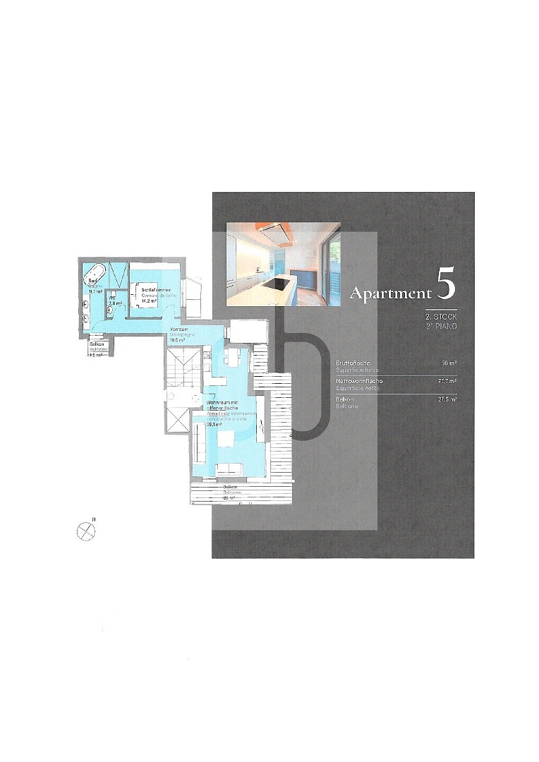 Diese moderne Wohnanlage vereint zeitgemäße Architektur, nachhaltige Bauweise und höchsten Wohnkomfort – für ein exklusives Lebensgefühl in den Bergen. Wir bieten diese wunderschöne 2 Zimmerwohnung auf der 2. Etage, bestehend aus Eingangsbereich, Wohnraum mit offener Küche und direktem Zugang zur Terrasse von 26 qm, 1 Badezimmer und ein großes Schlafzimmer und Keller Die Wohnung wird gänzlich möbliert übergeben.Garagen können getrennt gekauft werden.